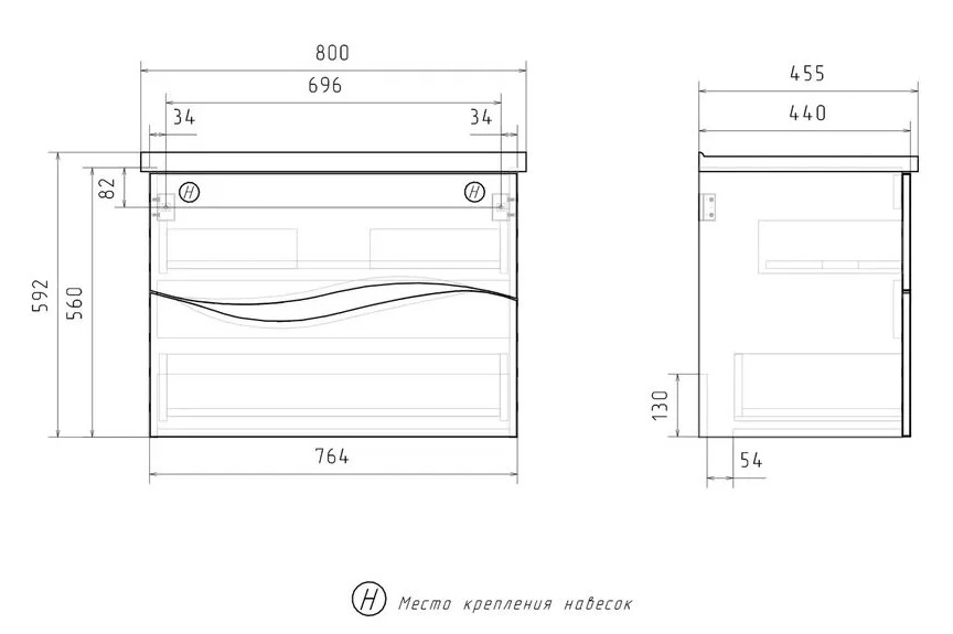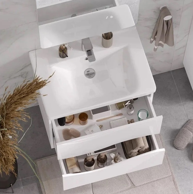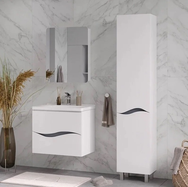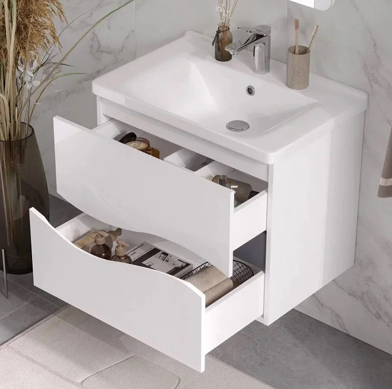 Тумба с раковиной Volna Grey 80 подвесной, 2 ящика