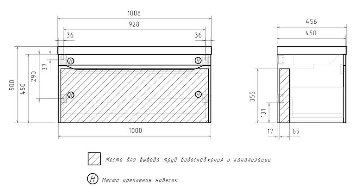 Тумба с раковиной Volna Prime 100 подвесной, 1 ящик, белый |