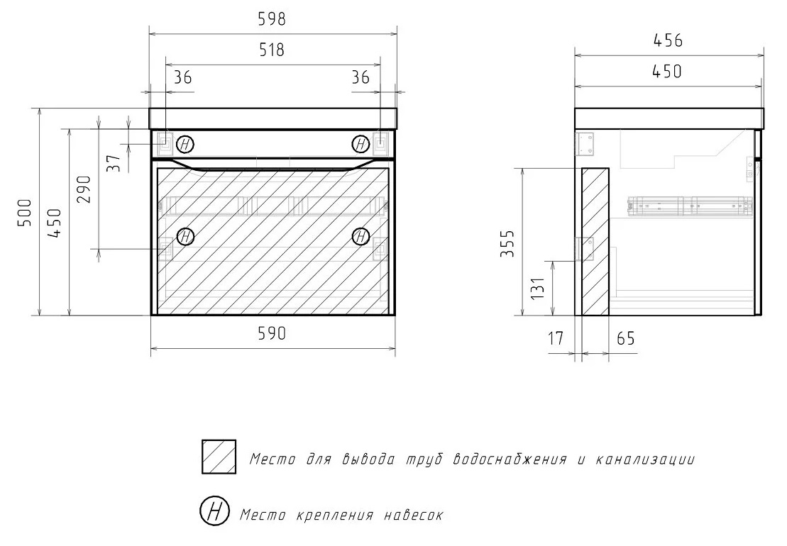 Тумба с раковиной Volna Prime 60 подвесной, 1 ящик, белый