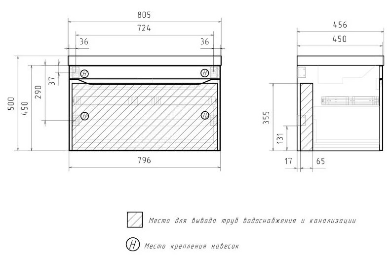 Тумба с раковиной Volna Prime 80 подвесной, 1 ящик, белый |