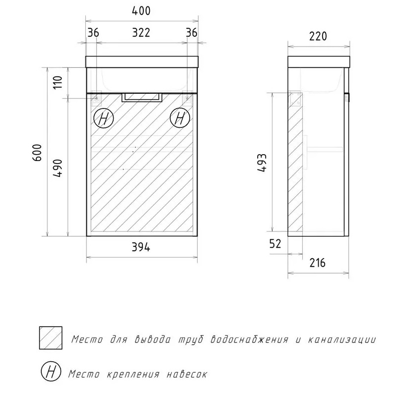 Тумба с раковиной Volna Vario 40 подвесной, бетон