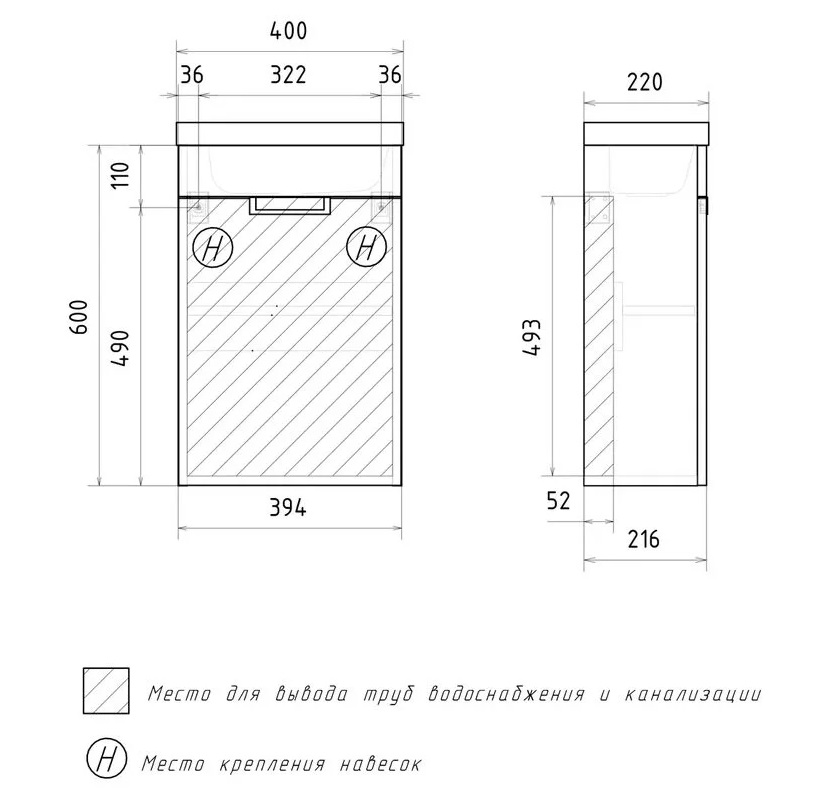 Тумба с раковиной Volna Vario 40 подвесной, софт, белый |