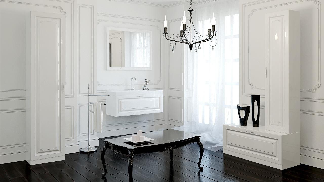 в классический интерьер просторной ванной комнаты. Выдвижной ящик