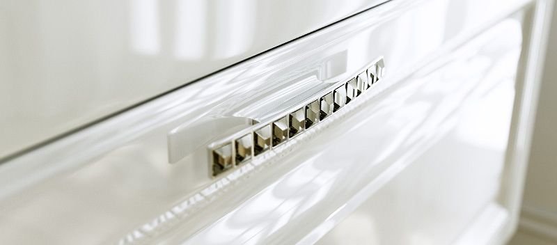Тумба дополнена изящной ручкой с имитацией страз. Влагостойкая