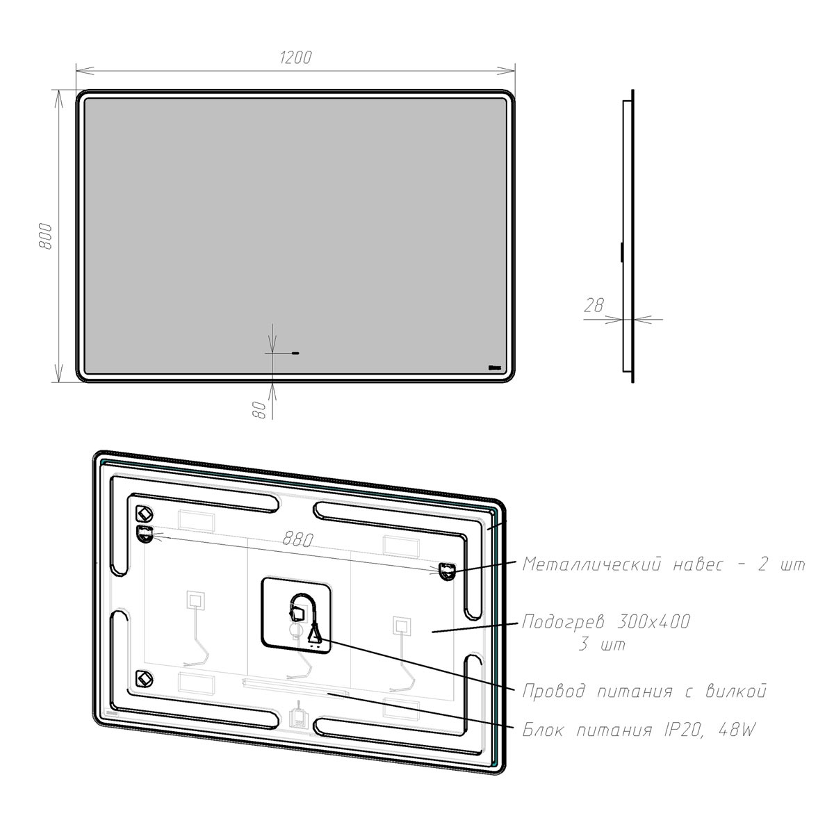 Зеркало Lemark Element LM120Z-E 120 с подсветкой |