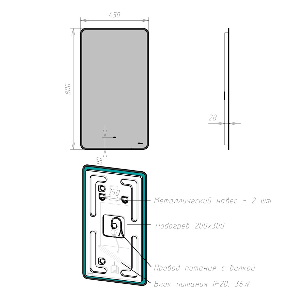 Зеркало Lemark Mioblack LM45ZM-black 45 с подсветкой