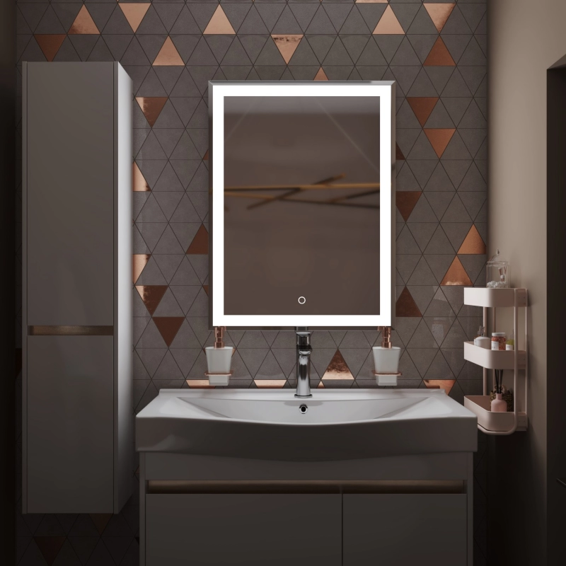 Настенное зеркало для ванной Mixline с подсветкой 60 х 80 см изготовлено из зеркального полотна толщиной 4 мм. Оснащено сенсорным выключателем и диммером, который при удержании пальца на сенсоре позволяет менять интенсивность освещения.