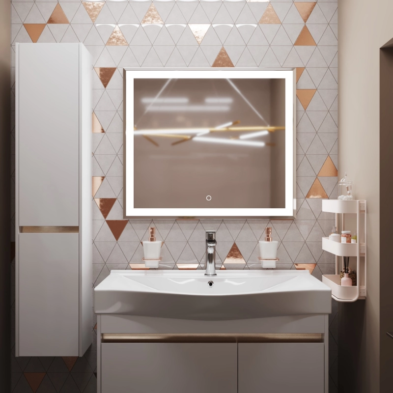 Настенное зеркало для ванной Mixline с подсветкой 80 х 70 см изготовлено из зеркального полотна толщиной 4 мм. Оснащено сенсорным выключателем и диммером, который при удержании пальца на сенсоре позволяет менять интенсивность освещения.