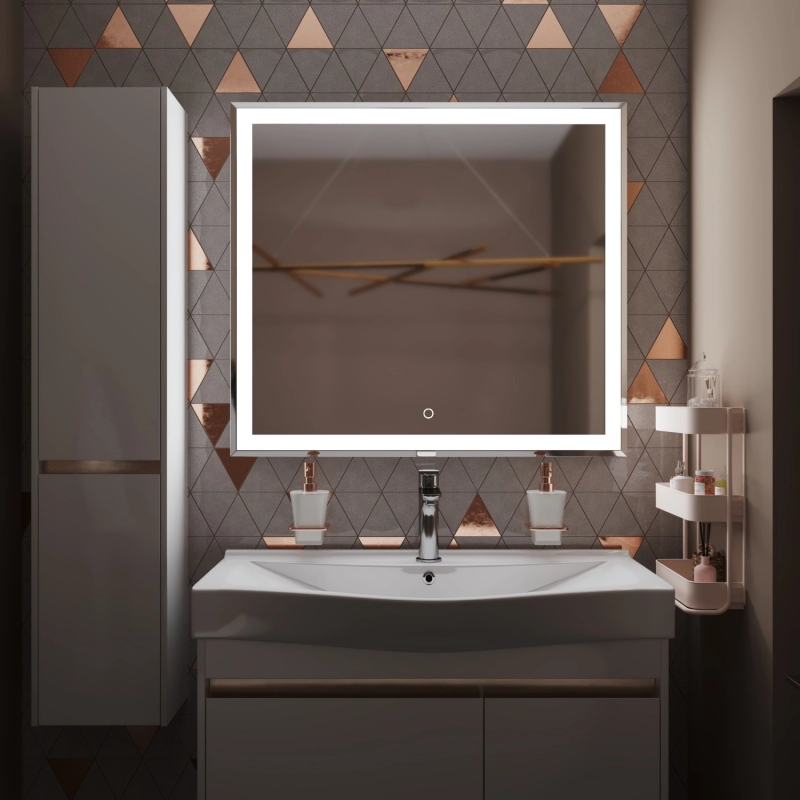 Настенное зеркало для ванной Mixline с подсветкой 90 х 80 см изготовлено из зеркального полотна толщиной 4 мм. Оснащено сенсорным выключателем и диммером, который при удержании пальца на сенсоре позволяет менять интенсивность освещения.
