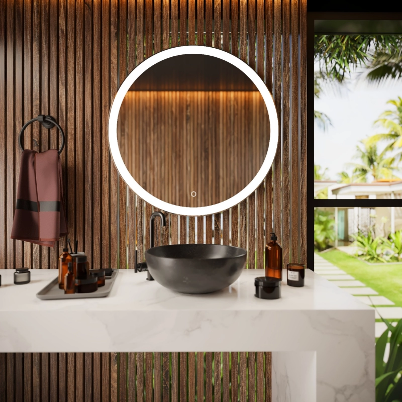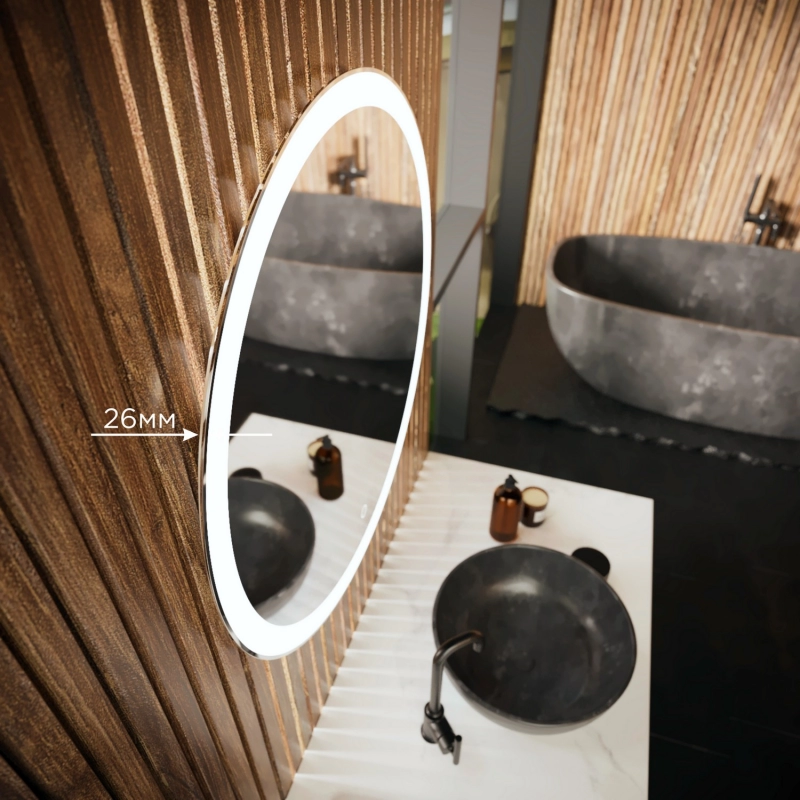 Настенное круглое зеркало для ванной Mixline с подсветкой D 70 см изготовлено из зеркального полотна толщиной 4 мм. Оснащено сенсорным выключателем и диммером, который при удержании пальца на сенсоре позволяет менять интенсивность освещения.