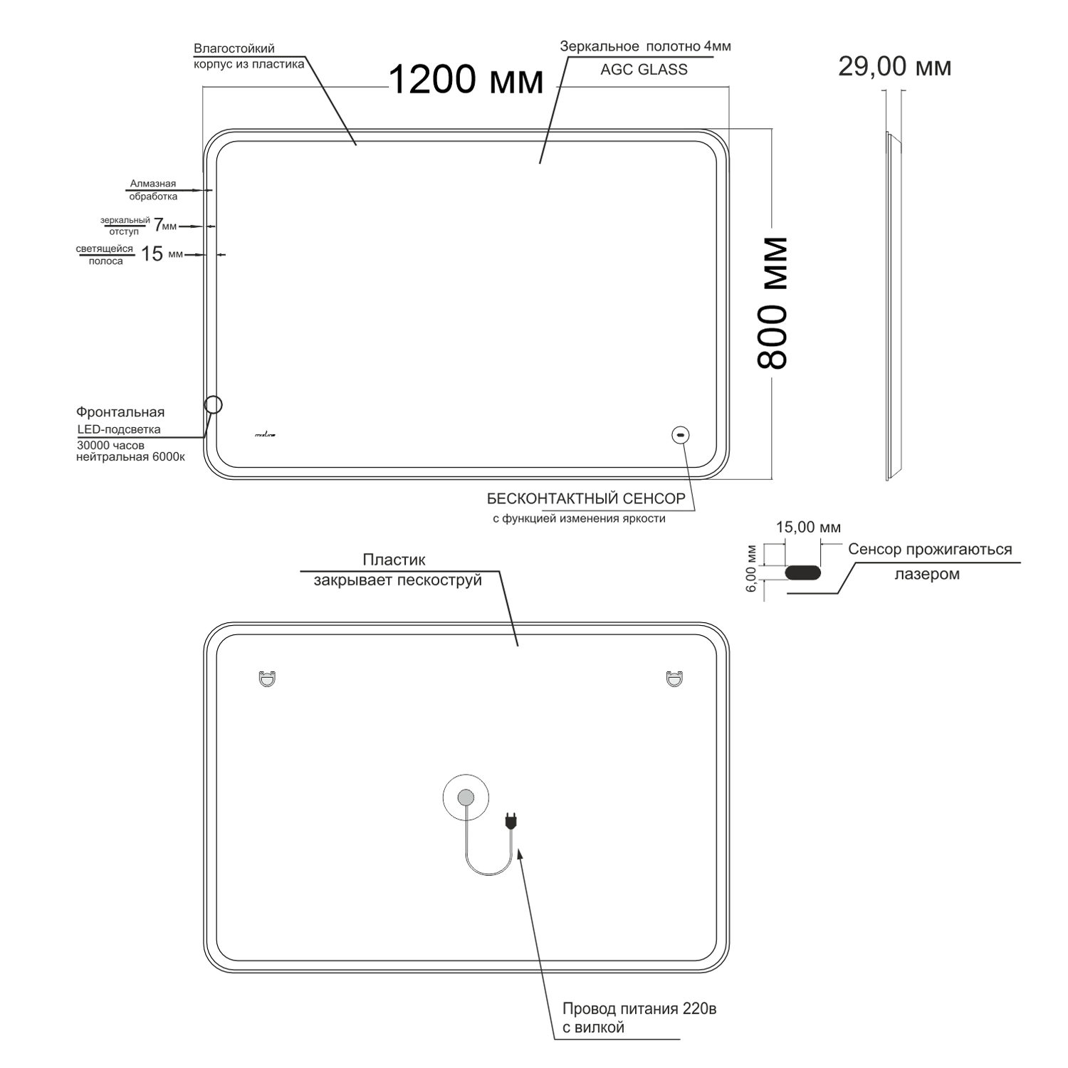 Зеркало Mixline Турин 120 555287 с подсветкой |