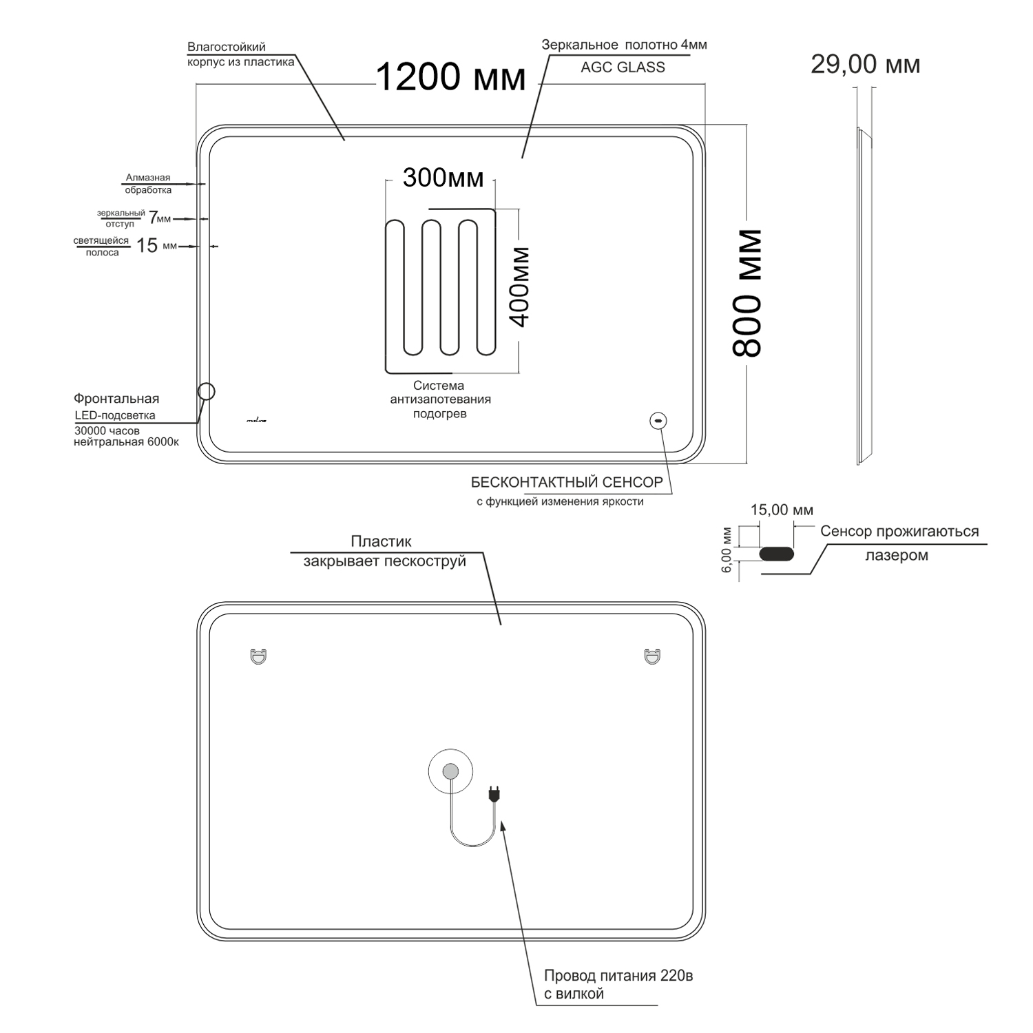 Зеркало Mixline Турин-2 120 555288 с подсветкой