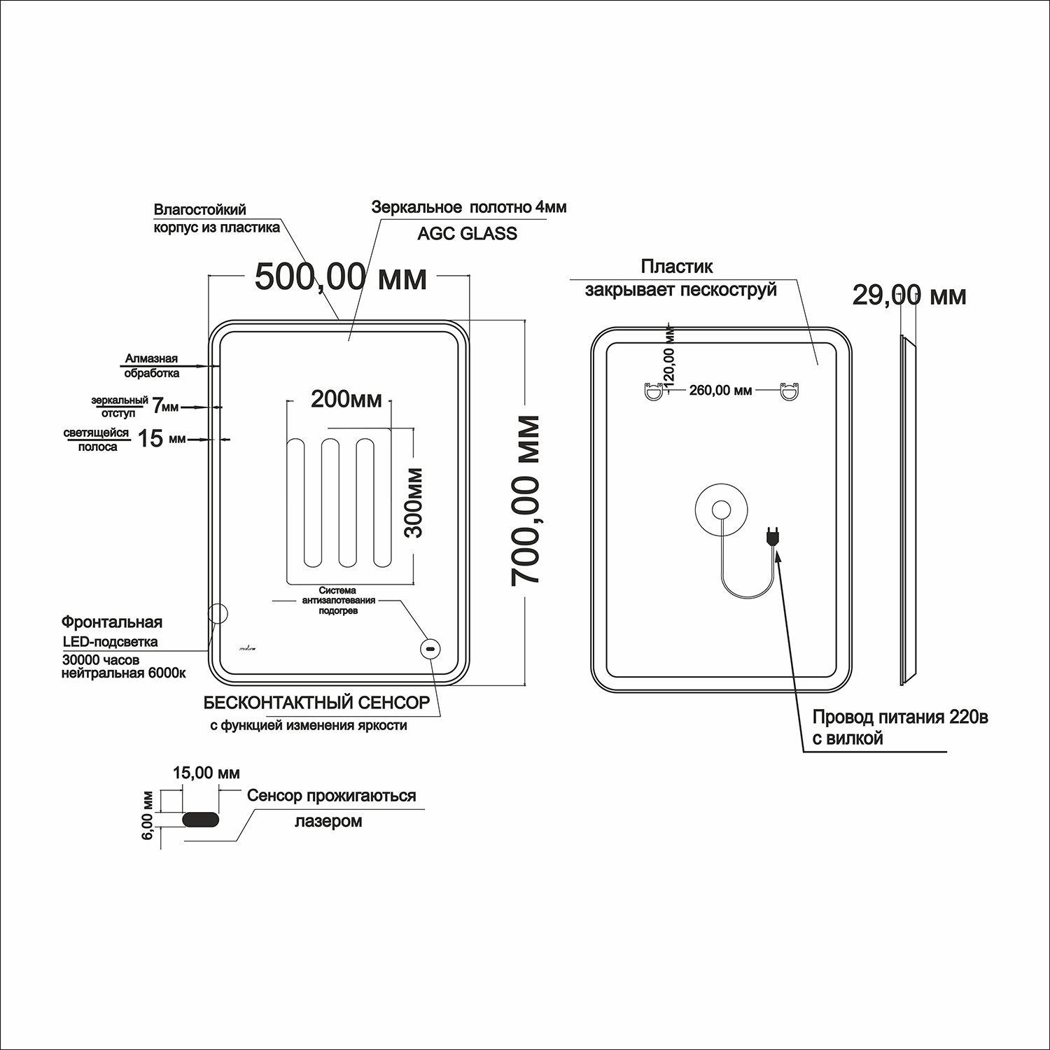 Зеркало Mixline Турин-2 50 554627 с подсветкой |