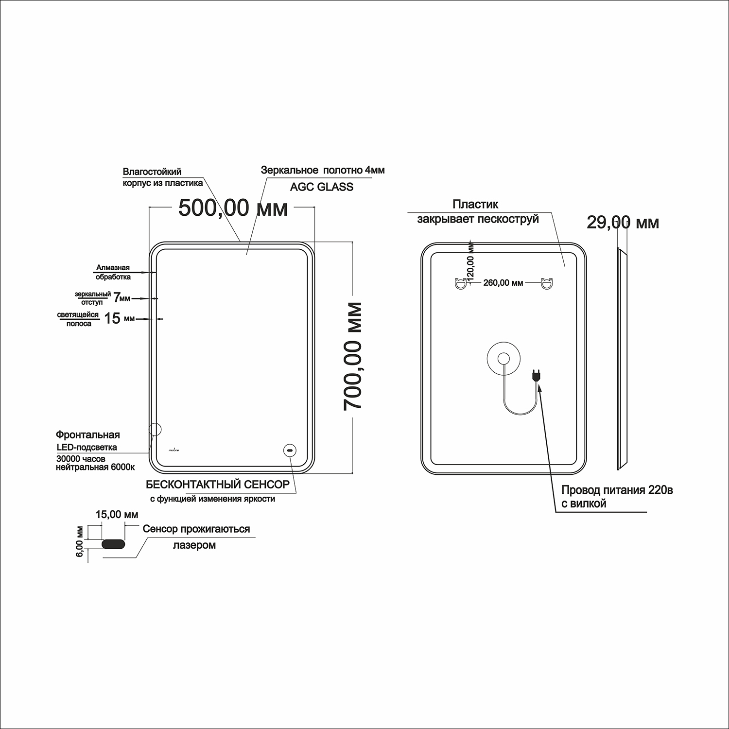 Зеркало Mixline Турин 50 554625 с подсветкой |