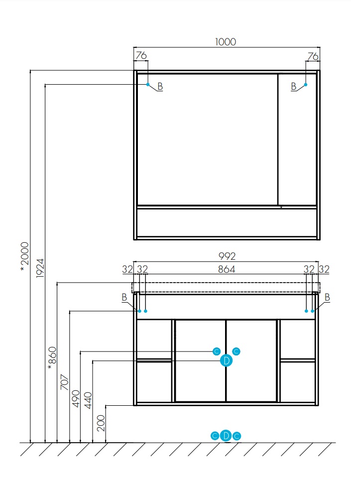 зеркало с полкой и шкафом