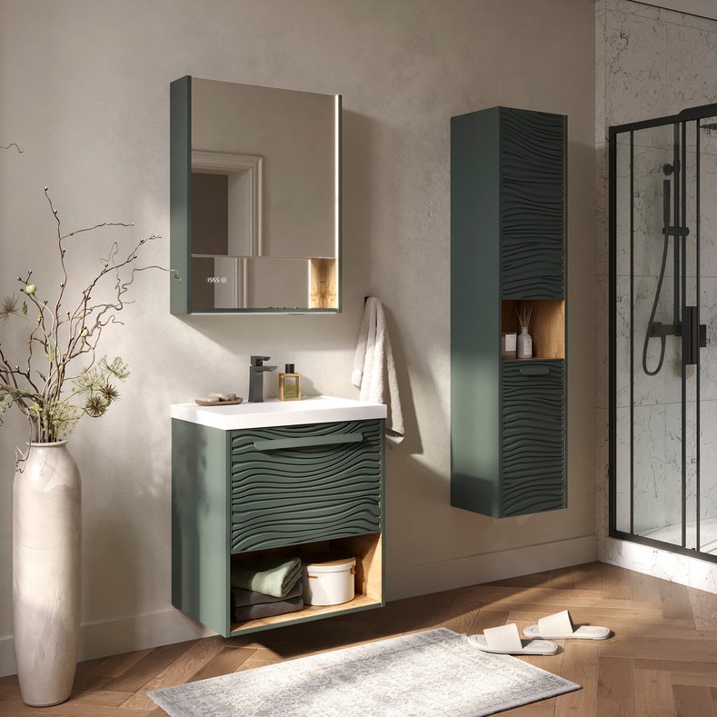 Зеркало Equil Gleam 60 зеленый камень, дуб вотан с подсветкой