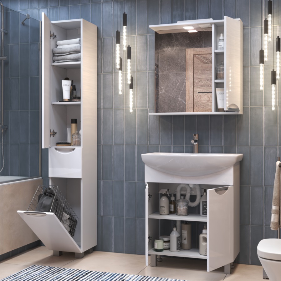 полка и изолированный шкаф удобны для хранения средств гигиены.