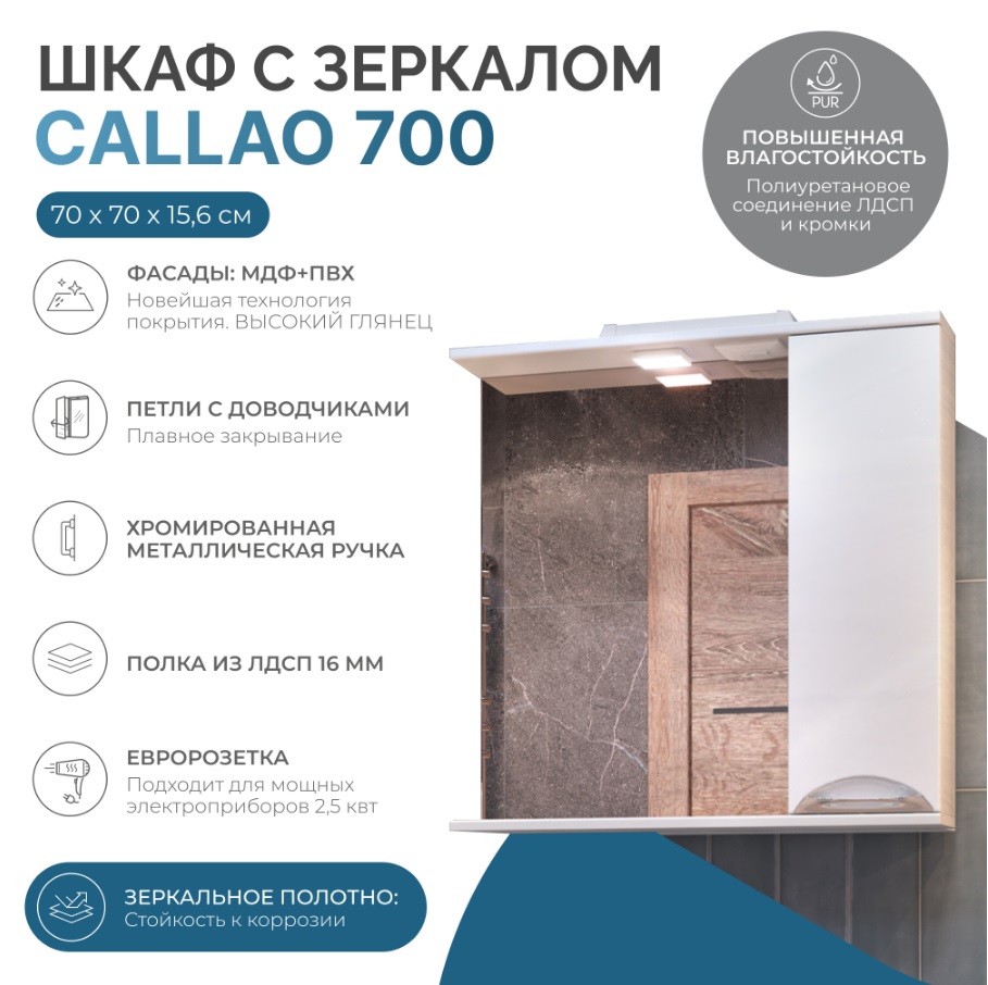 Зеркало-шкаф Vigo Callao 70 R с правосторонней ориентацией поможет