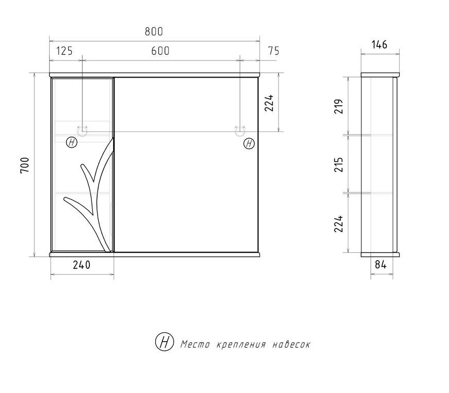 Зеркало Volna Adel 80 L белый, с подсветкой |