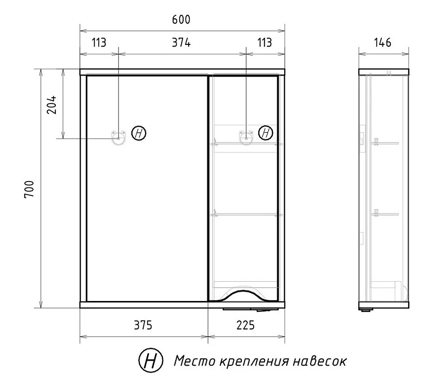 Зеркало Volna Barney 60 R дуб гудзон, с подсветкой