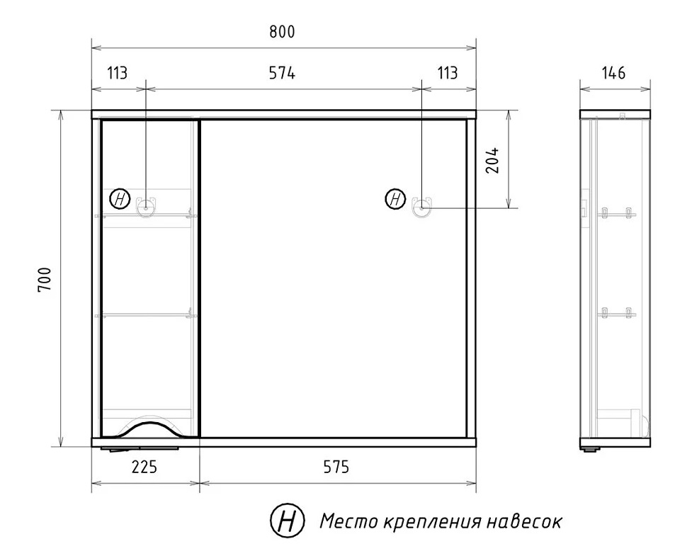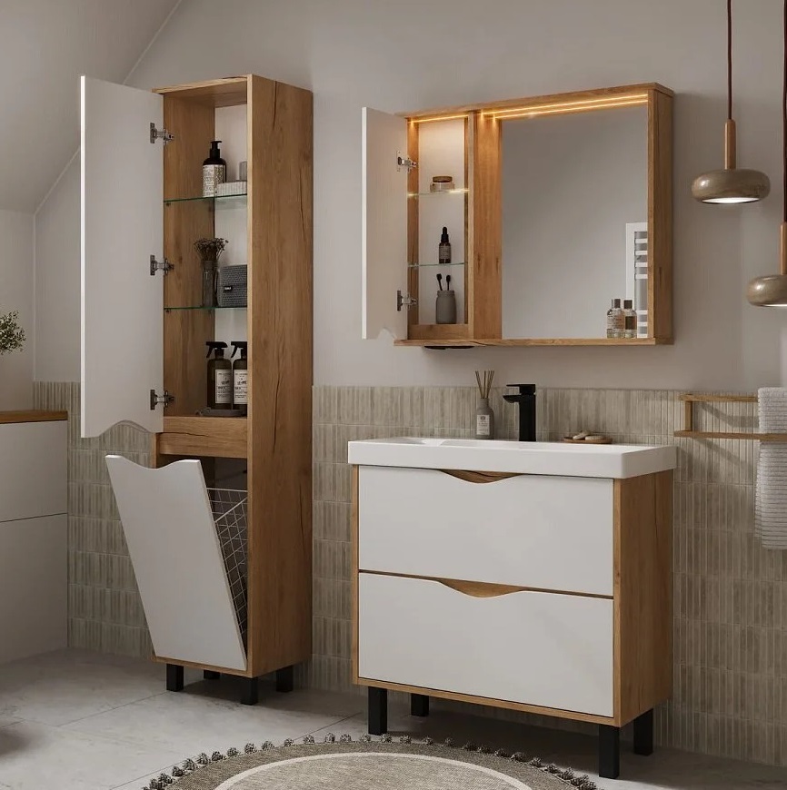 Зеркало Volna Barney 80 L дуб гудзон, с подсветкой |