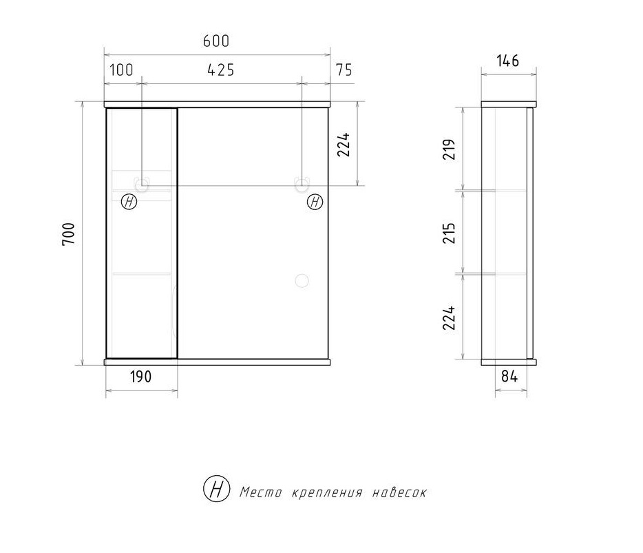 Зеркало Volna Lake 60 L белый, с подсветкой