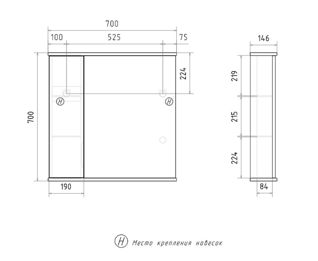 Зеркало Volna Lake 70 L белый, с подсветкой