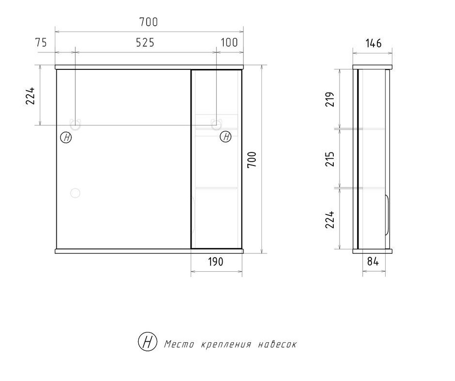 Зеркало Volna Lake 70 R белый, с подсветкой