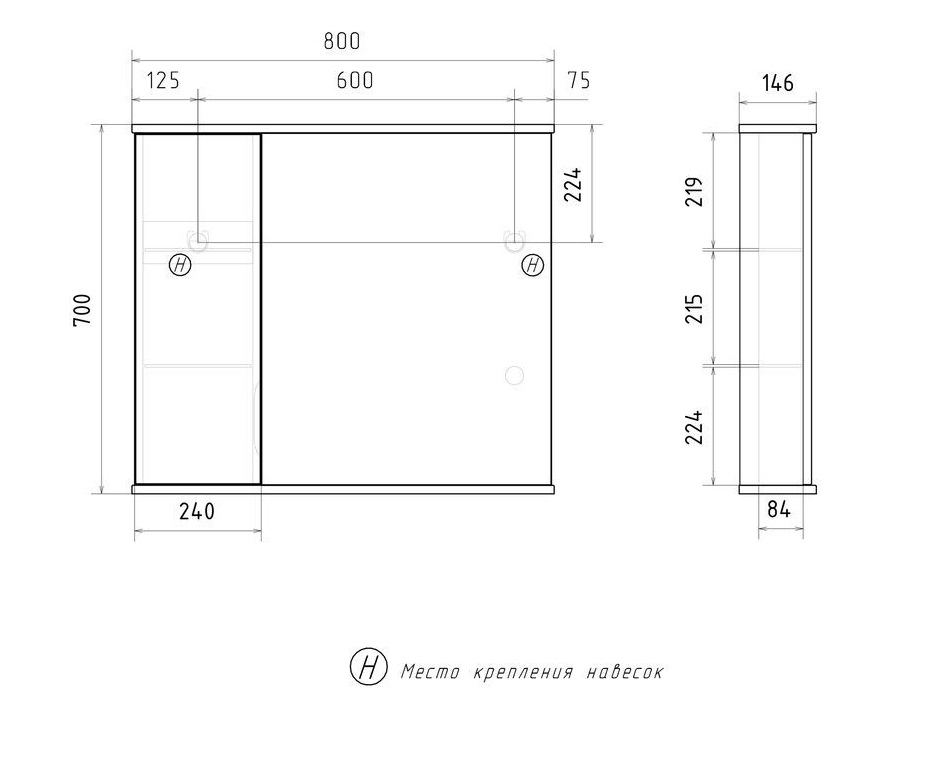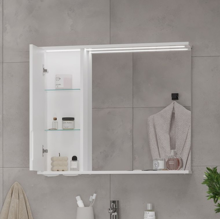 Зеркало Volna Lake 80 L белый, с подсветкой