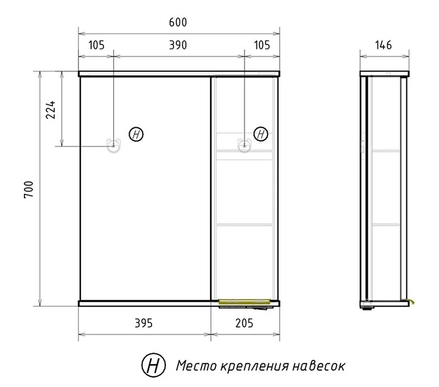 Зеркало Volna LottyGold 60 R белый, с подсветкой |