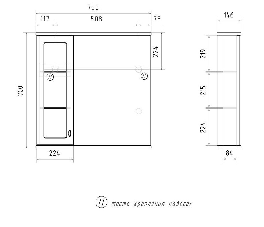 Зеркало Volna Milena 70 L белый, с подсветкой |