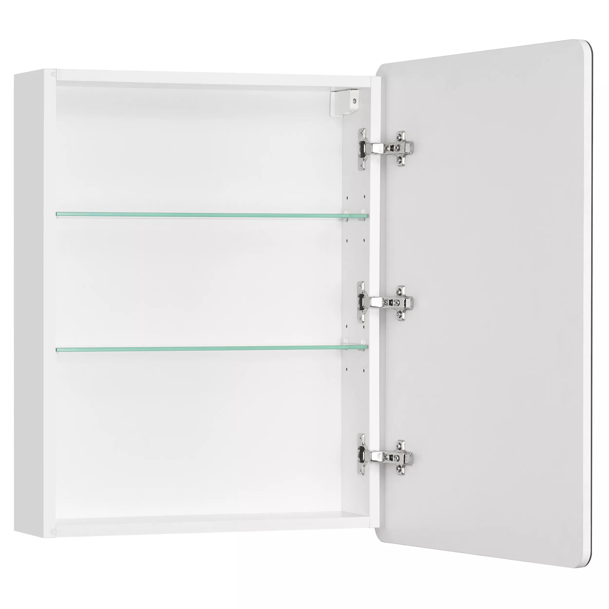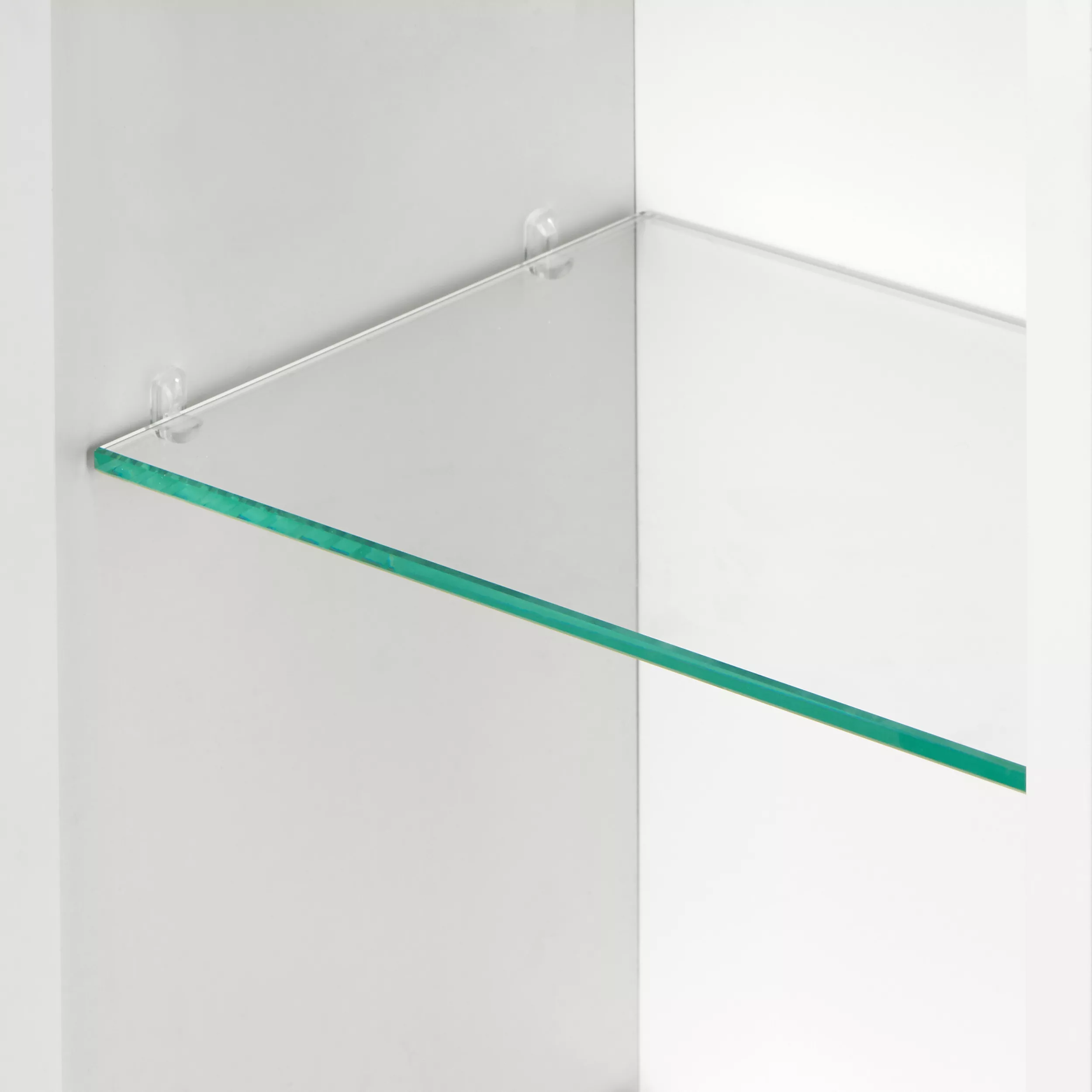 Зеркальный шкафчик Скай PRO 55 отличается строгим и лаконичным дизайном в духе актуальных модных тенденций. Эстетику минимализма подчеркивает отсутствие лицевой фурнитуры. Корпус выполнен из влагостойкой ЛДСП и покрыт белой глянцевой краской ультрафиолетового отверждения, которая придаёт изделию привлекательный внешний вид и защищает от влаги. За зеркальным фасадом-створкой расположены две стеклянные полки, на которых можно разместить необходимые мелочи.
