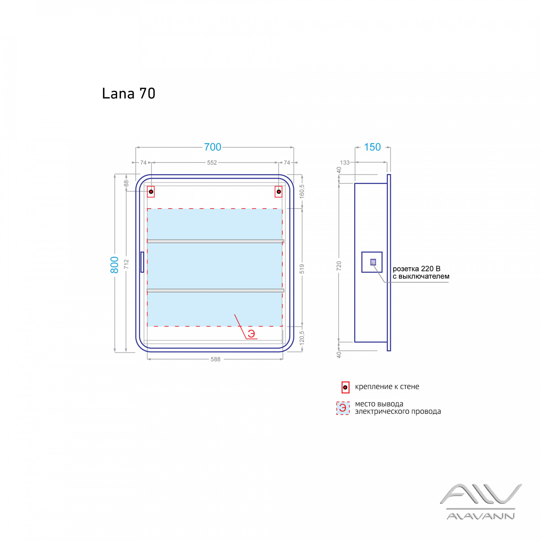 Зеркало-шкаф в ванную с подсветкой Lana 70 способен создать комфортную и уютную обстановку. Благодаря LED-подсветке по периметру изделия внешний вид шкафа отличается стилем, удобством, надежностью и функциональностью.