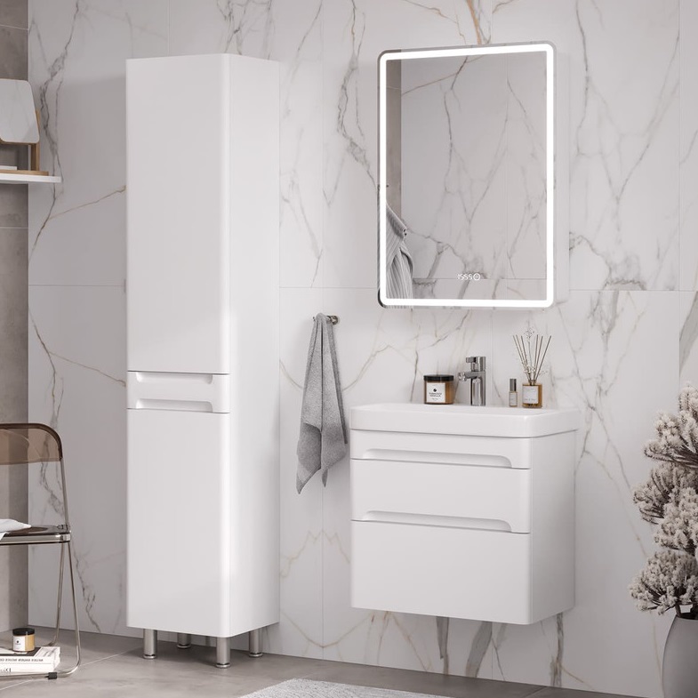 Зеркало-шкаф Equil Nice LED 60 R c часами белый