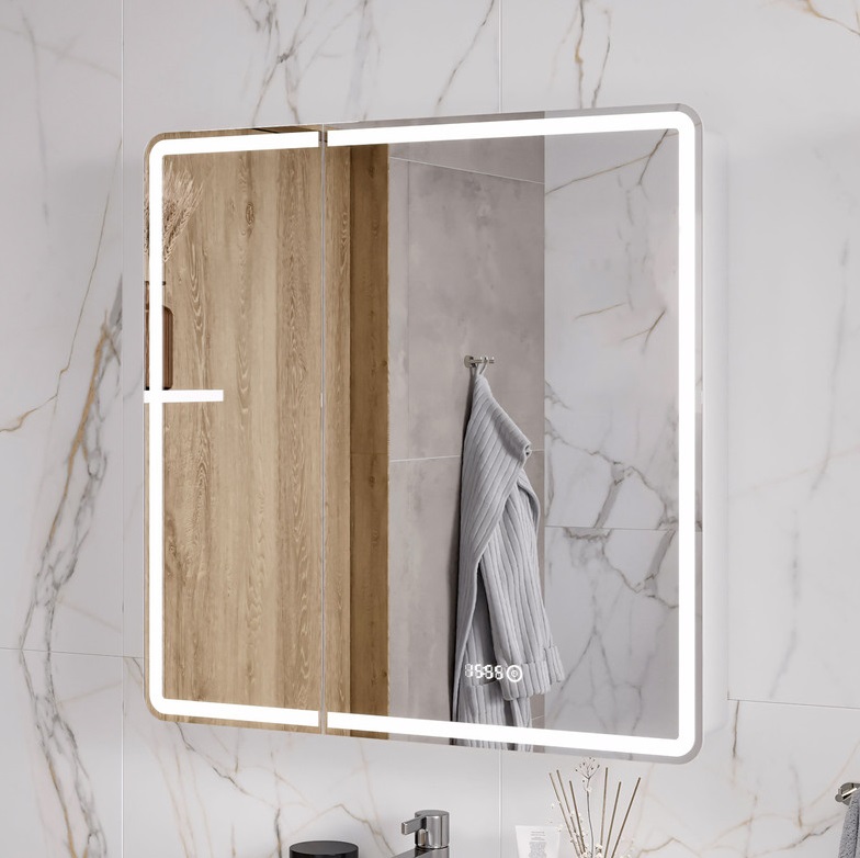 Зеркало-шкаф Equil Nice LED 80 c часами белый