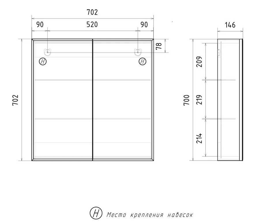 Зеркало-шкаф Volna Geometry 70 белый