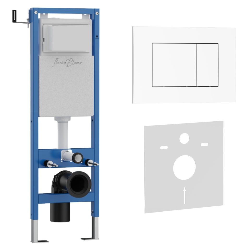 Система инсталляции для унитазов Iberica Blanca Esti-S IB.001M.855 с клавишей смыва белой глянцевой и шумоизоляцией