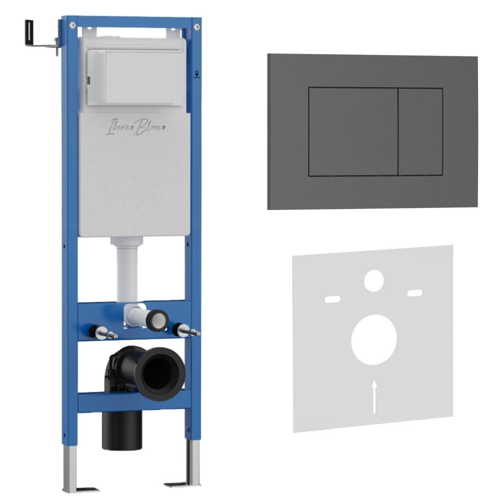 Система инсталляции для унитазов Iberica Blanca Esti-S IB.001M.856 с клавишей смыва серой матовой и шумоизоляцией