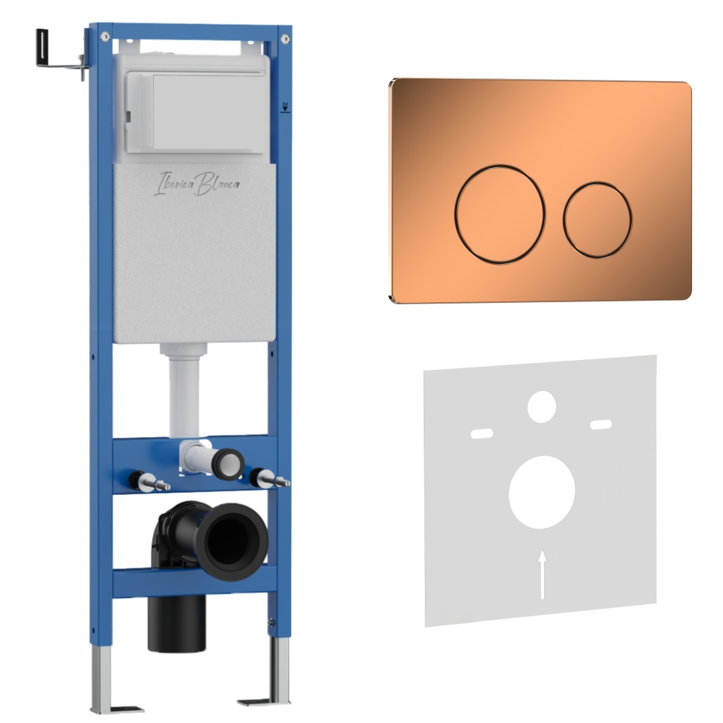 Система инсталляции для унитазов Iberica Blanca Inox-O IB.001M.8171 с клавишей смыва золото глянцевой и шумоизоляцией