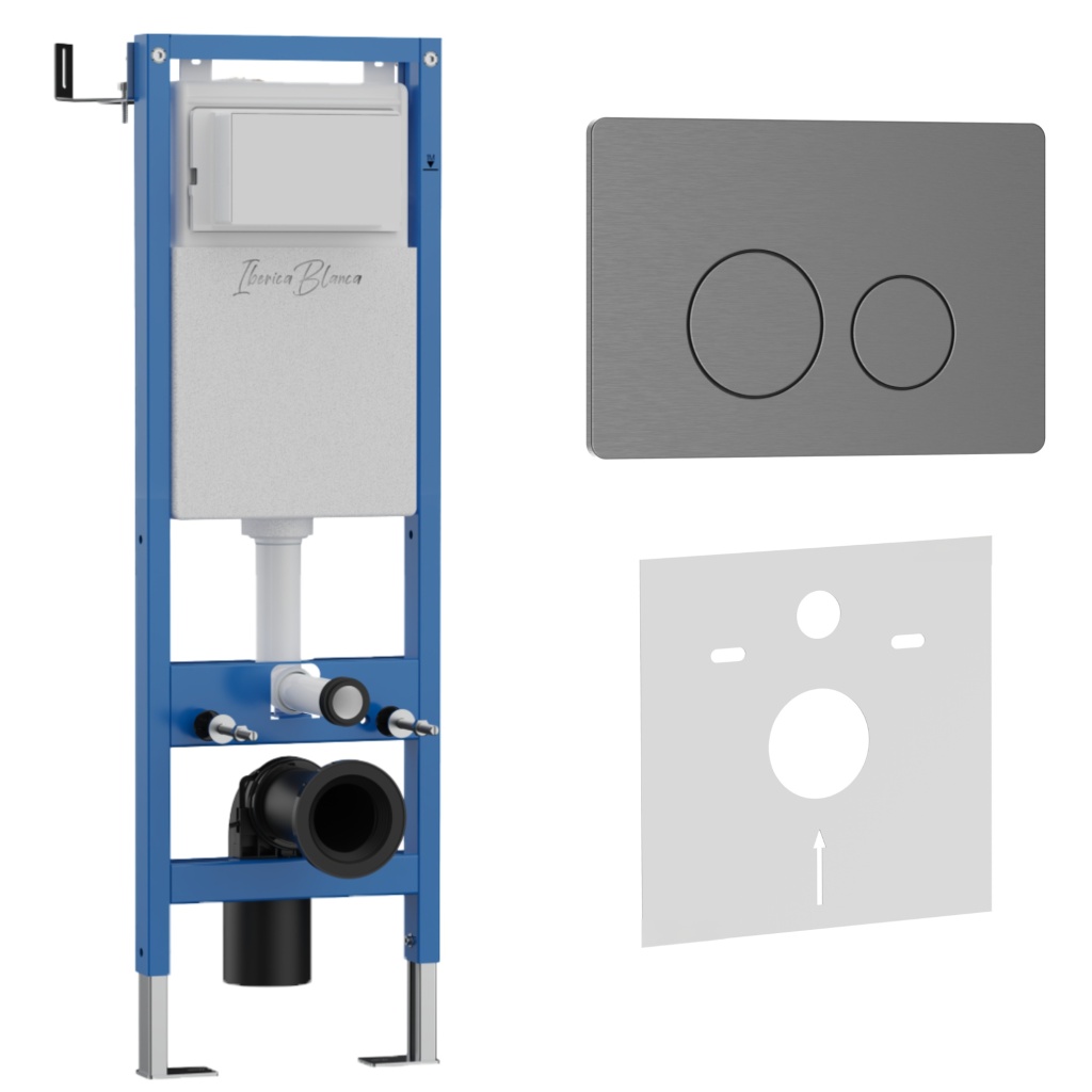 Система инсталляции для унитазов Iberica Blanca Inox-O IB.001M.818 с клавишей смыва серой матовой и шумоизоляцией