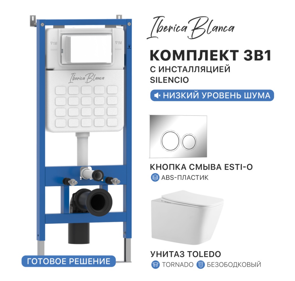 Комплект Iberica Blanca PRSET.IB02 инсталляция, унитаз торнадо, кнопка смыва |