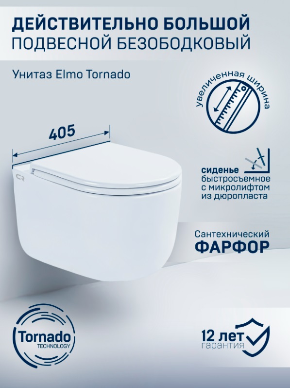 Унитаз подвесной Charus Elmo Tornado EWC700-129WT торнадо |