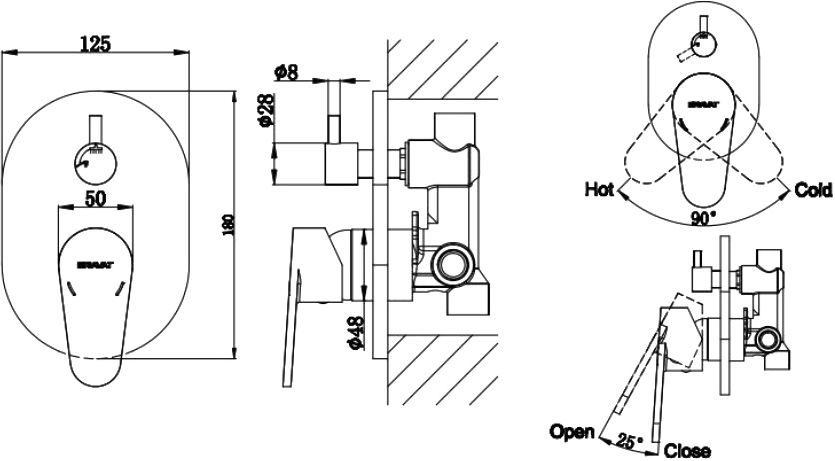 Смеситель Bravat Eler FB848238CP-2-RUS для душа С ВНУТРЕННЕЙ ЧАСТЬЮ |