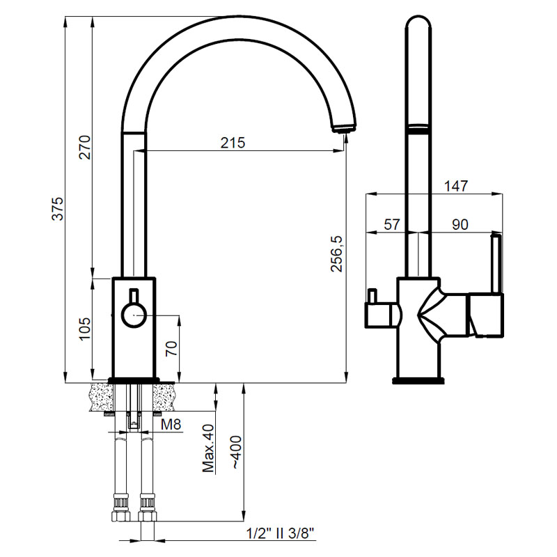 совмещенный излив для фильтра, возможность присоединения фильтра для воды
