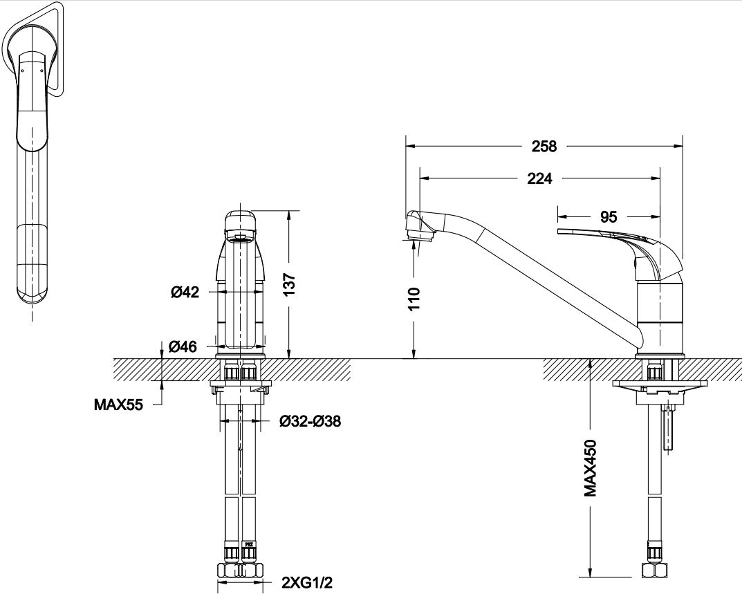коммуникациям с помощью двух трубок гибкой подводки 450 мм M10-G1/2