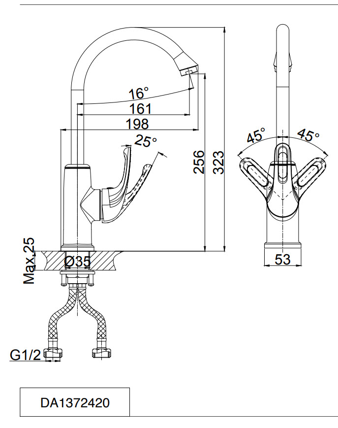 Смеситель D&K Eucharius Rhein DA1372421 для кухонной мойки, грей |