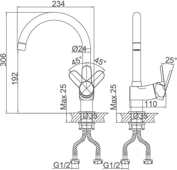 Смеситель D&K Marx Rhein DA1392401 для кухонной мойки |