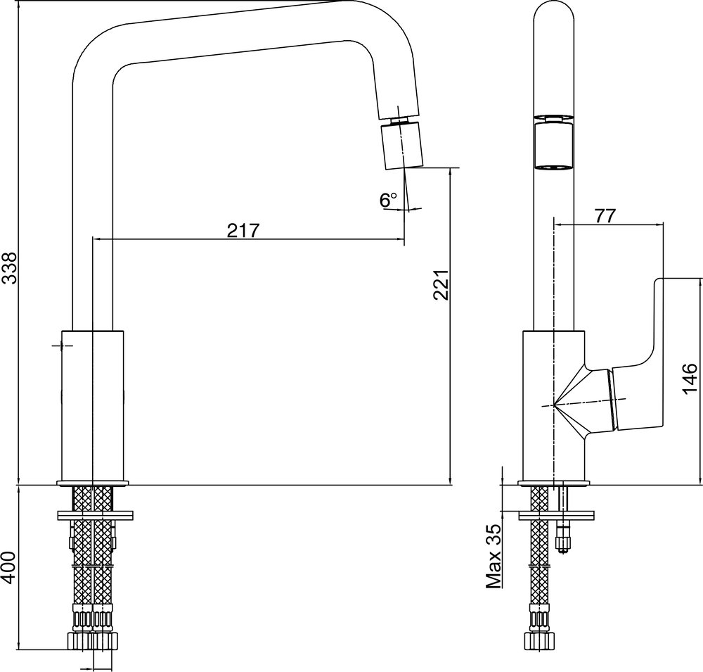 Смеситель E.C.A. Luna 102118044EX для кухонной мойки