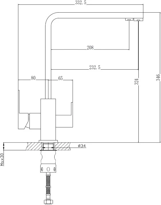 Высота излива, см: