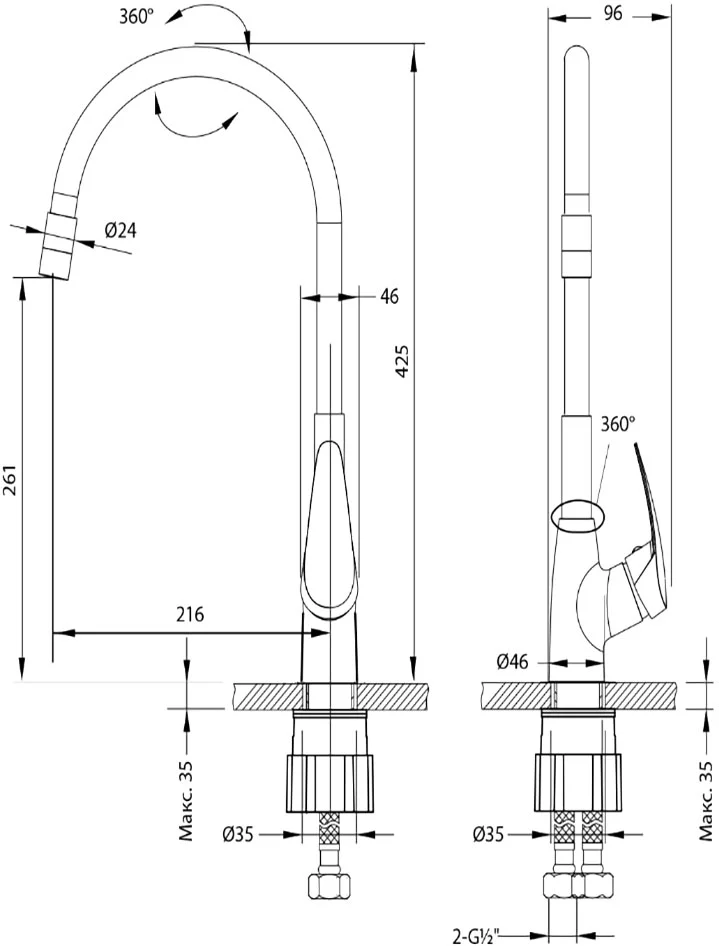 Высота излива:
